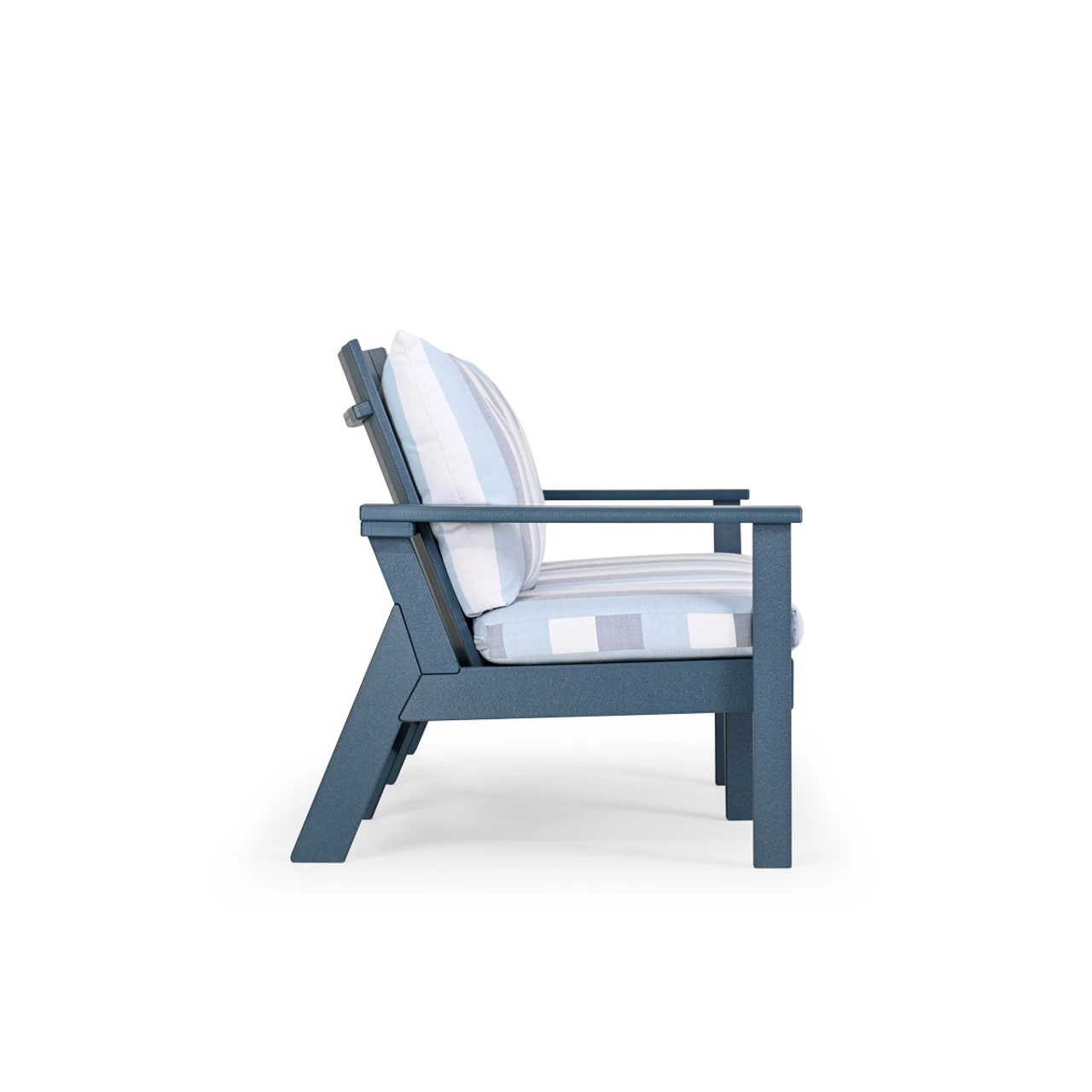 Every piece of our poly furniture is made from the finest high‐density polyethylene lumber that will not harm the environment by emitting harmful chemicals. It’s tough enough to take any kind of weather, resistant to mold and mildew, and will remain beautiful for years with minimal maintenance. Choose our quick ship stocking color combination or customize it to your unique style with the many color combinations. Simplicity is crafted from post-consumer recycled plastic combined with super corrosion-resistant chromium-plated stainless steel hardware. You have beautiful furniture made to last and easy to care for: American durability, American quality from start to finish, 100% Designed and manufactured in the USA.