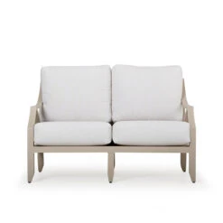 The Somerset Outdoor Aluminum Loveseat is a bold and beautiful addition to any outdoor setting. The Somerset Collection has well-placed transitions that are both functional and aesthetically pleasing, allowing for maximum comfort while still maintaining a visual appeal. The lines of the loveseat flow gently into one another, making it a perfect conversation piece for any gathering. Rust proof aluminum frames are powder-coated for durability while also adding texture.