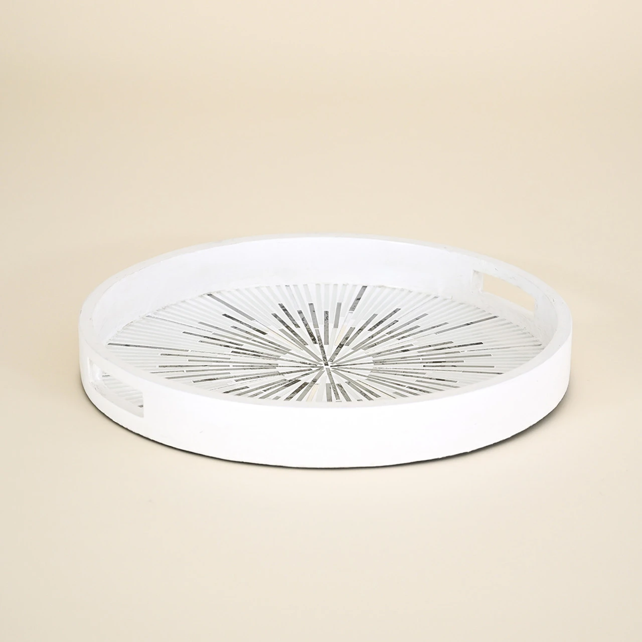 This hand-crafted white round tray with mosaics is perfect for serving drinks or snacks.