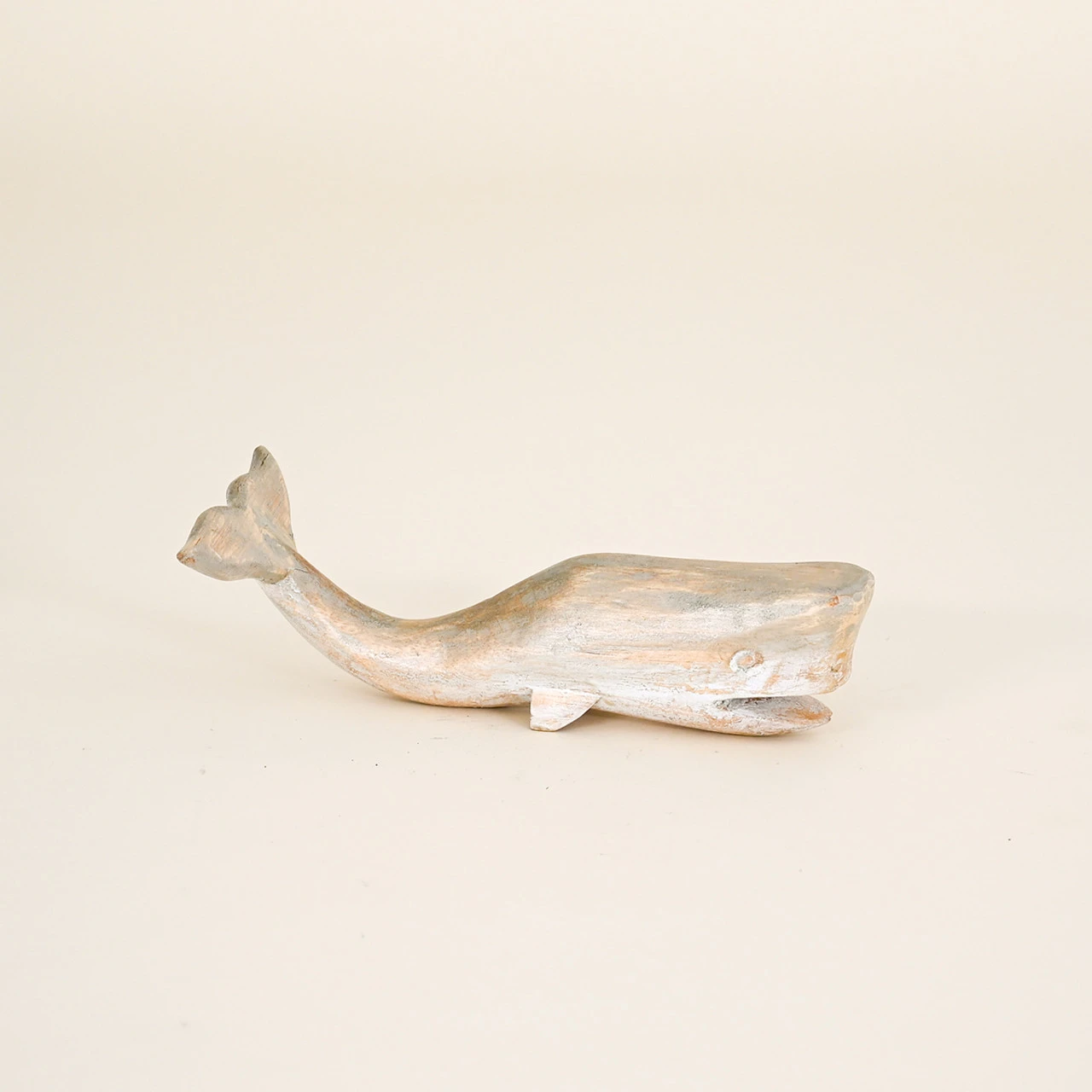 This small hand-carved wooden whale has a flat bottom to sit anywhere in your room.
